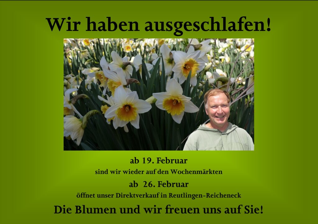 Blumen und Pflanzen der Saison zu günstigen Tagespreisen direkt ab Lager kreative Sträuße und Gebinde auf Vorbestellung Blumen für Ihr Fest – von unseren Floristen gefertigt oder für Ihre eigenen kreativen Ideen zum Selbergestalten